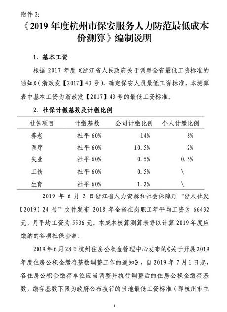 杭州市保安協會印發《2019年度杭州市保安服務人力防范最低成本價測算》